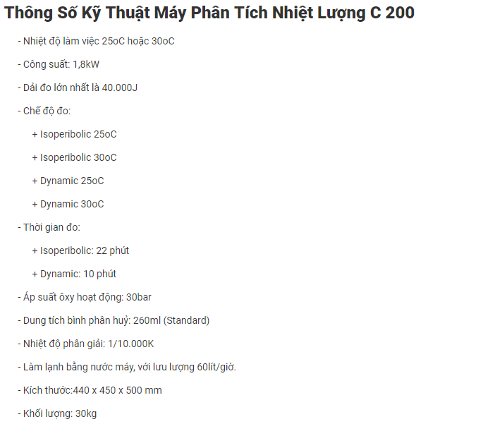 ● Các phương pháp làm việc: isoperibol, thời gian đo: xấp xỉ 22 phút/ dynamic, thời gian đo: xấp xỉ 7 phút
